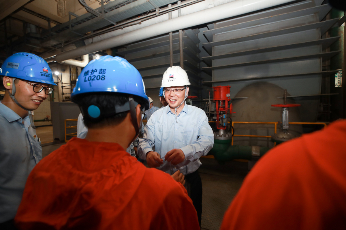 7月11日,集團黨委書記、董事長劉盛輝赴嘉興發電廠慰問一線工作者。 王重陽 攝