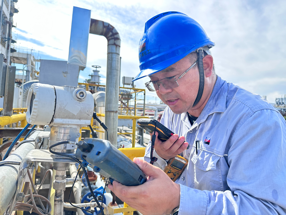 烈陽高照,浙能集團(tuán)旗下的伊犁新天煤化工儀控人員正在檢測(cè)儀表工作狀態(tài)。 方佳 攝
