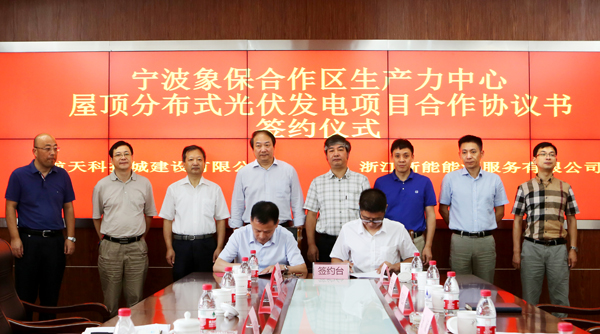 會(huì)上,浙能電力副總經(jīng)理、浙能能源服務(wù)公司總經(jīng)理程光坤與航天科技城建設(shè)有限公司總經(jīng)理郭光磊同時(shí)簽署了《寧波象保區(qū)生產(chǎn)力中心屋頂分布式光伏發(fā)電項(xiàng)目合作協(xié)議書》,象保合作區(qū)綜合能源服務(wù)的第一個(gè)項(xiàng)目正式拉開(kāi)序幕。