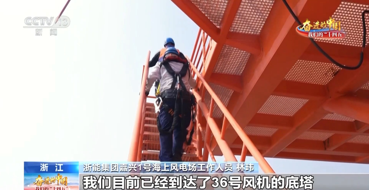 編者按:10月17日,由中央電視臺新聞頻道播出的《奮進的中國 我們的“十四五”》節目聚焦浙能集團海上風電發展,以風機維護工作者第一視角,帶領全國觀眾走進浙能集團嘉興1號海上風電場。