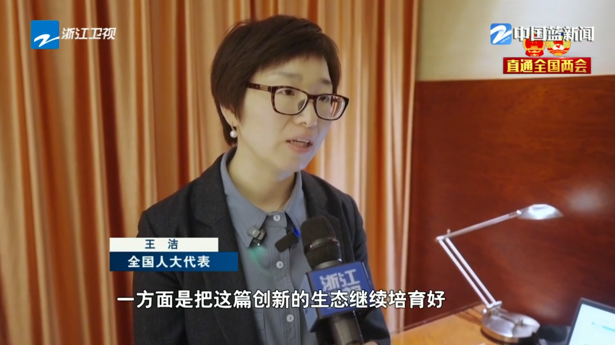 3月9日,浙江衛視《今日評說》就“‘創新種子’如何長成‘參天大樹’”采訪王潔同志。 浙江衛視 圖
