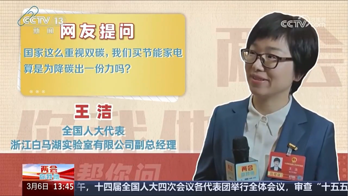 3月6日,央視新聞頻道《新聞直播間》播出兩會融媒體特別節目《兩會你我他》采訪王潔同志。 央視新聞頻道 圖