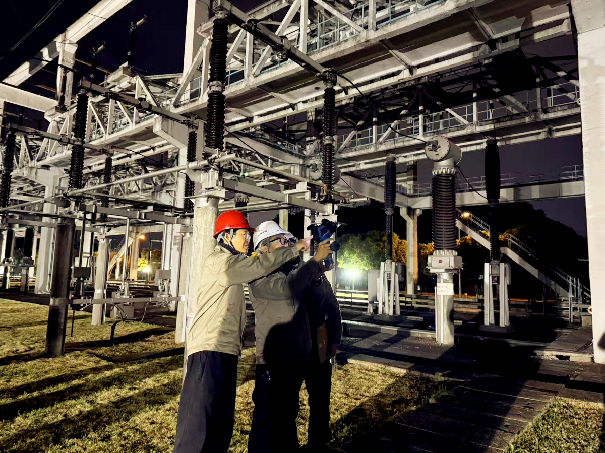 浙能電力工程檢測人員利用夜間低溫時(shí)段開展絕緣子紅外檢測。 王洋 提供