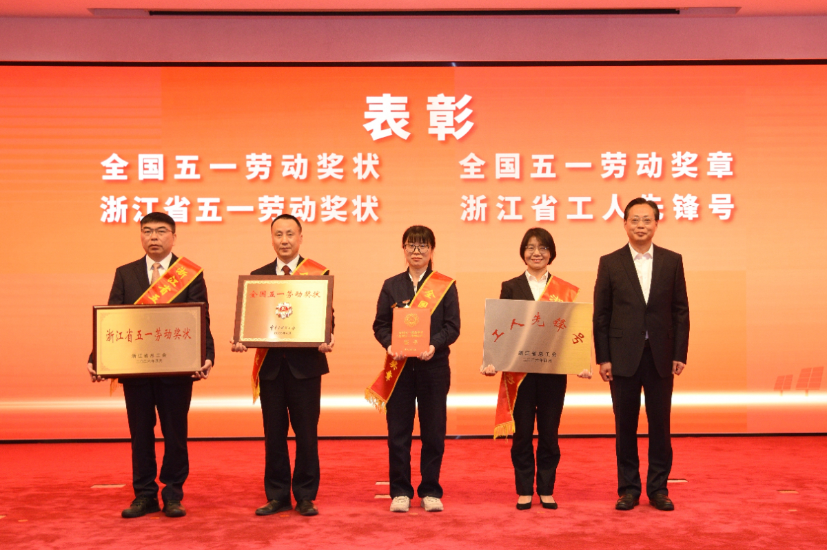 劉盛輝為全國五一勞動獎狀、全國五一勞動獎章、浙江省五一勞動獎狀、浙江省工人先鋒號頒獎。 祝益軍 攝