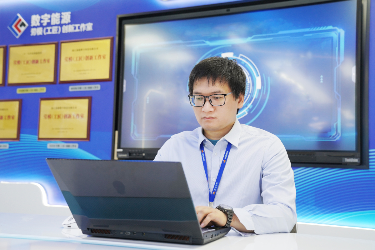 李浩源在數字能源勞模(工匠)創新工作室工作照。 浙能數科 提供