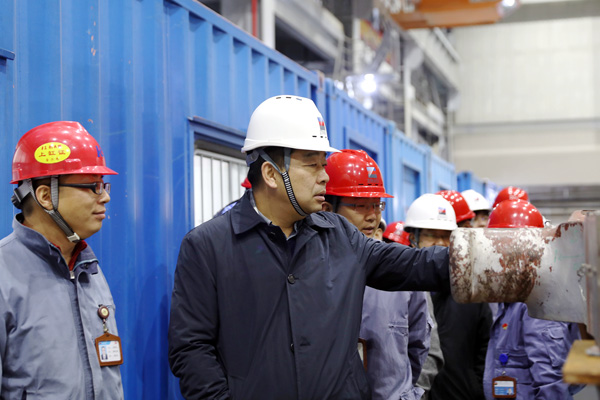 隨后,柯吉欣一行深入濱電一、二期主廠房、7S樣板區、集控室、機組A修現場、基建現場,對濱電的安全生產、二期建設等工作進行調研指導并特別強調了現場安全注意事項。柯吉欣表示濱電現場工作十分繁忙,但緊張有序,忙而不亂。