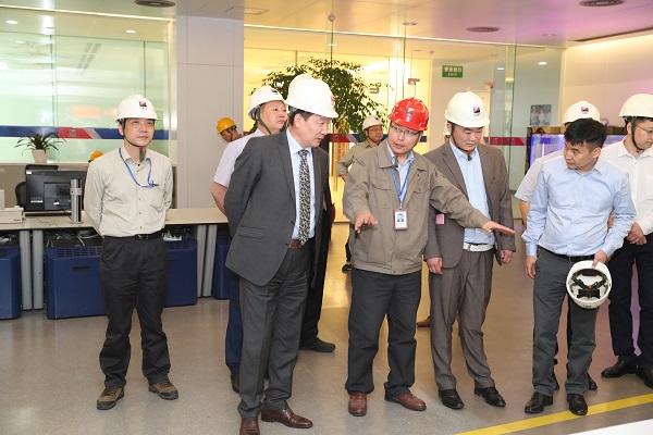 嘉華發(fā)電公司領(lǐng)導(dǎo)現(xiàn)場(chǎng)介紹8號(hào)機(jī)組生產(chǎn)情況。 鄭嘯 攝