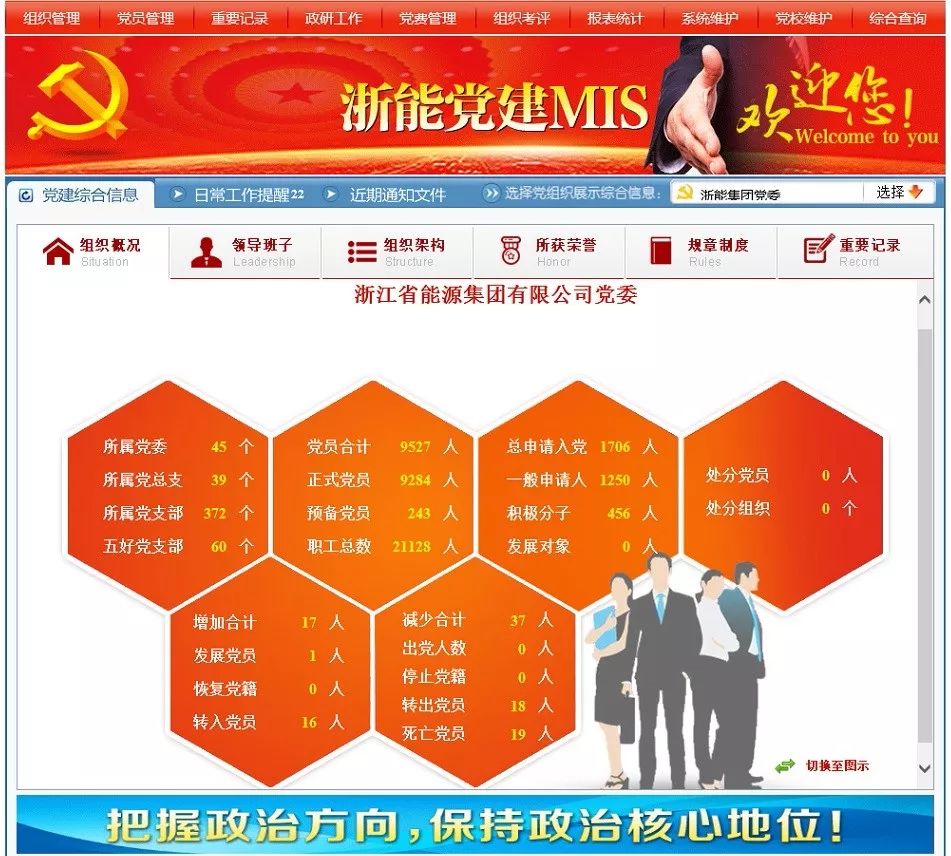 浙能黨建信息管理系統5.0版界面。浙能集團政工部 提供