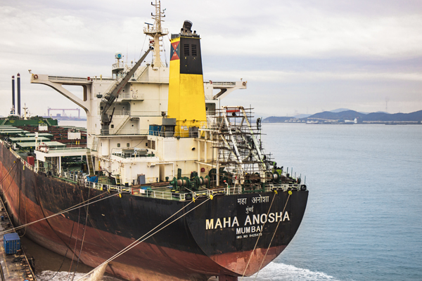 安裝脫硫塔后的印度船。 陳勇哲 攝