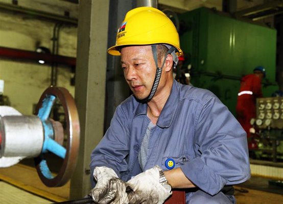 國(guó)慶節(jié)當(dāng)日,浙能鎮(zhèn)海發(fā)電公司運(yùn)行部工人正在6號(hào)機(jī)大修現(xiàn)場(chǎng)施工作業(yè)。董英姿 攝