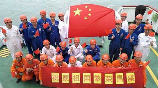 在錨地等候裝卸的浙能“明州76”輪全體船員與國(guó)旗同框,共慶新中國(guó)成立70周年。董建國(guó) 攝