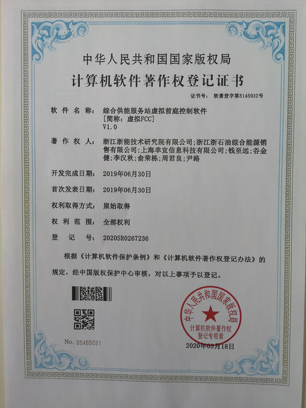浙石油銷售公司科技項(xiàng)目獲得國家軟件著作權(quán)