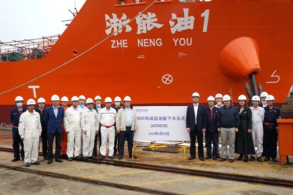浙能集團首艘新建的萬噸油船“浙能油1”輪順利下水