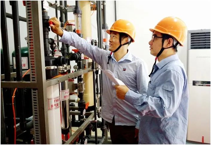▲浙能技術(shù)研究院環(huán)化專業(yè)人員在長興中試基地膜實驗室調(diào)試設(shè)備