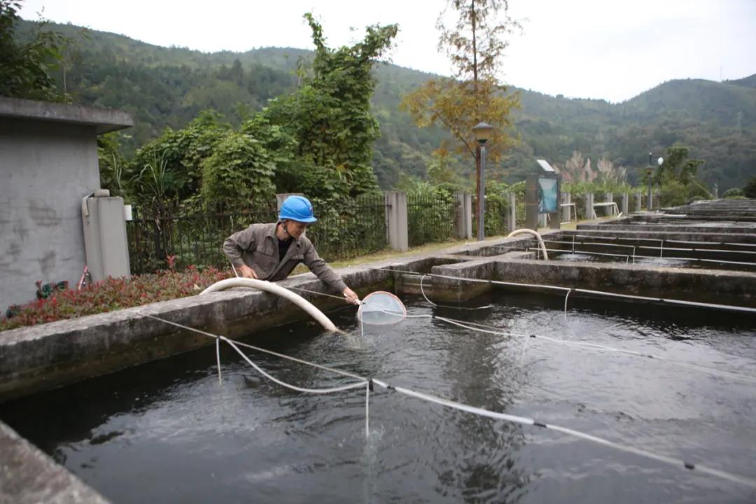 灘坑水電站魚(yú)類(lèi)增殖站工作人員照料魚(yú)苗