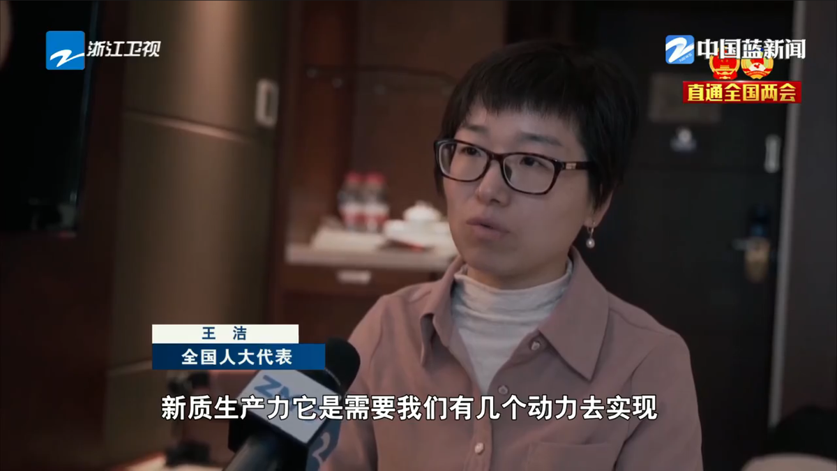 浙江衛視《浙江新聞聯播》報道《直通全國兩會·履職新聲音 王潔:讓科研與生產力雙向奔赴》。 浙江衛視 圖